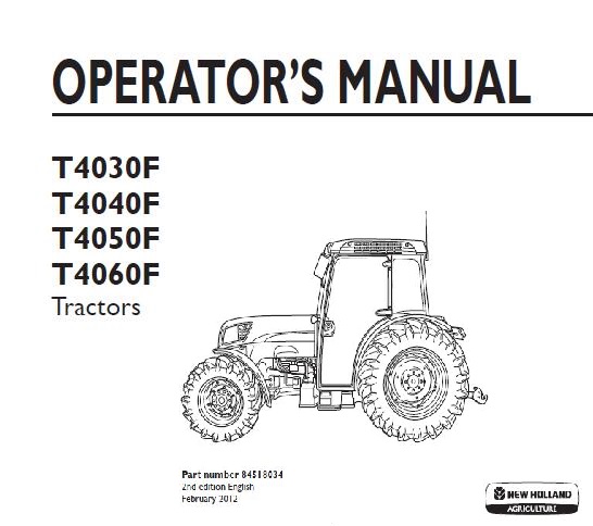 Read This New Holland T4030F, T4040F, T4050F, T4060F Tractor Operator’s Manual carefully to learn how to operate and service your machine correctly. Failure to do so could result in personal injury or equipment damage.