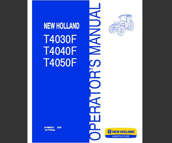 Read This New Holland T4030F, T4040F, T4050F Tractor Operator’s Manual carefully to learn how to operate and service your machine correctly. Failure to do so could result in personal injury or equipment damage.