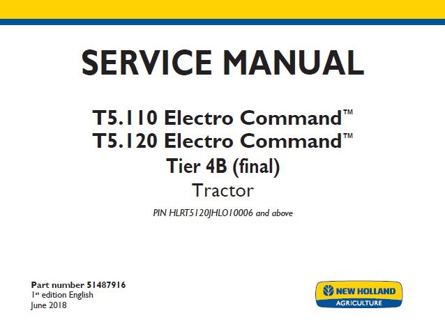 When your New Holland T5.110 Electro Command, T5.120 Electro Command Tier 4B (final) Tractor needs maintenance or repair,This service repair manual is great to have.