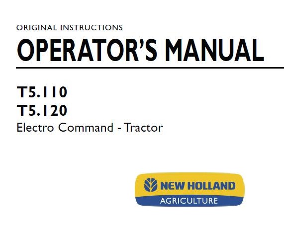 Read This New Holland T5.110, T5.120 Electro Command Tractor Operator’s Manual carefully to learn how to operate and service your machine correctly. Failure to do so could result in personal injury or equipment damage.