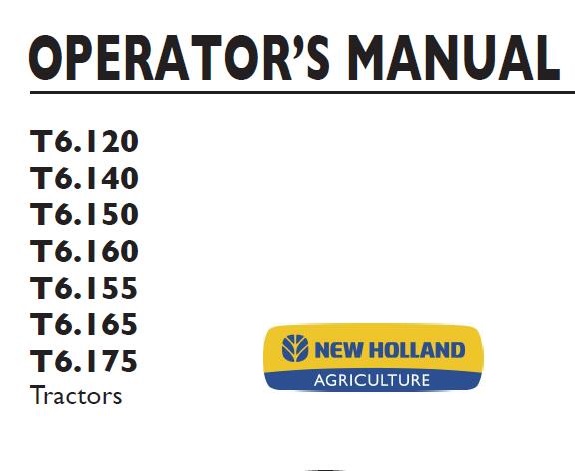 Read This New Holland T6.120, T6.140, T6.150, T6.160, T6.155, T6.165, T6.175 Tractor Operator’s Manual carefully to learn how to operate and service your machine correctly. Failure to do so could result in personal injury or equipment damage.
