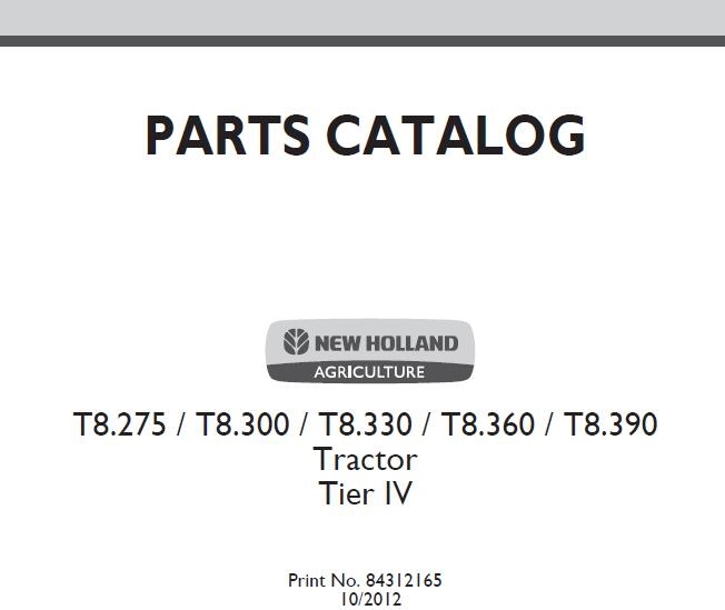 When your New Holland T8.275 / T8.300 / T8.330 / T8.360 / T8.390 Tier IV Tractor needs Detailed parts information,This parts manual is great to have.