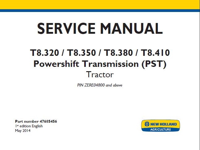 When your New Holland T8.320, T8.350, T8.380, T8.410 Powershift Transmission (PST) Tractor needs maintenance or repair,This service repair manual is great to have.
