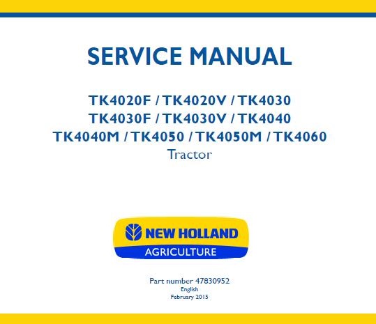 When your New Holland TK4020F / TK4020V / TK4030 / TK4030F / TK4030V / TK4040 / TK4040M / TK4050 / TK4050M / TK4060 Tractor needs maintenance or repair,This service repair manual is great to have.