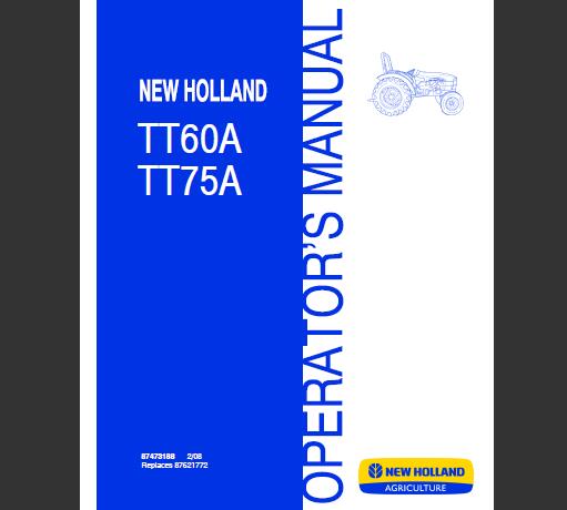 Read This New Holland TT60A , TT75A Tractor Operator’s Manual carefully to learn how to operate and service your machine correctly. Failure to do so could result in personal injury or equipment damage.