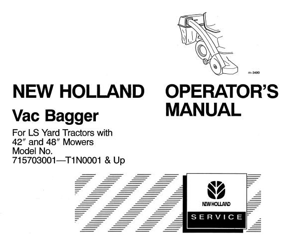 Read This New Holland Vac Bagger Operator’s Manual carefully to learn how to operate and service your machine correctly. Failure to do so could result in personal injury or equipment damage.