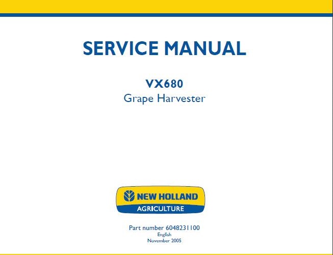 Use this New Holland VX680 Grape Harvester service repair manual, Any owner could make the right decisions about how to maintain and repair their machine. We not only provide quality manuals, but we will also Provide excellent after-sales service, Customer Satisfaction Guaranteed!