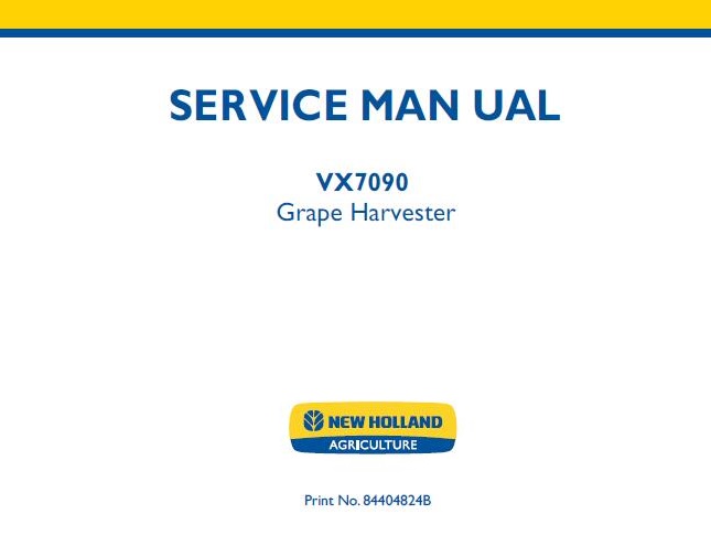Use this New Holland VX7090 Grape Harvester service repair manual, Any owner could make the right decisions about how to maintain and repair their machine. We not only provide quality manuals, but we will also Provide excellent after-sales service, Customer Satisfaction Guaranteed!