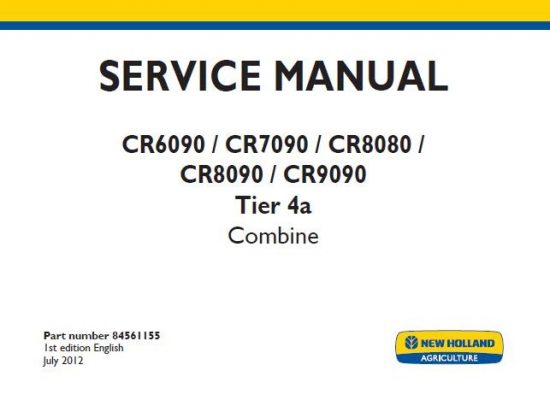 New Holland CR6090 / CR7090 / CR8080 / CR8090 / CR9090 Tier 4a Combine Service Repair Manual [PIN YBG115106 and up ]