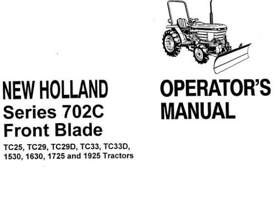 Read This New Holland Series 702C Front Blade ( for TC25, TC29, TC29D, TC33, TC33D, 1530, 1630, 1725 and 1925 Tractors ) Operator's Manual carefully to learn how to…