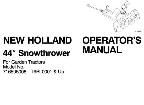 New Holland 44 Snowthrower For Garden Tractors Operator’s Manual