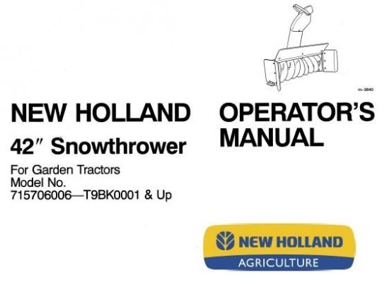 New Holland 42 Snowthrower For Garden Tractor Operator’s Manual