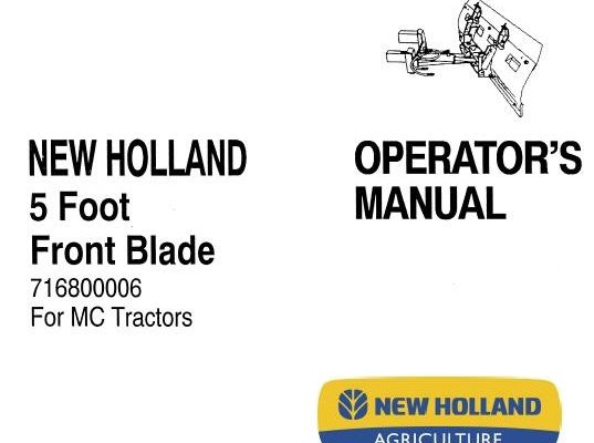 New Holland 5 Foot Front Blade For MC Tractor Operator’s Manual