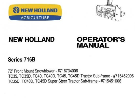 New Holland 72″ Front Mount Snowblower Operator’s Manual