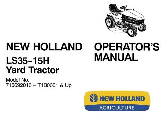 Read This New Holland LS35 - 15H Yard Tractor Operator's Manual carefully to learn how to operate and service your machine correctly. Failure to do so could result in…