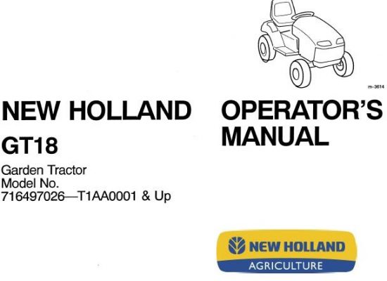 New Holland GT18 Garden Tractor Operator’s Manual ( Model No.716497026-T1AA0001 & Up )
