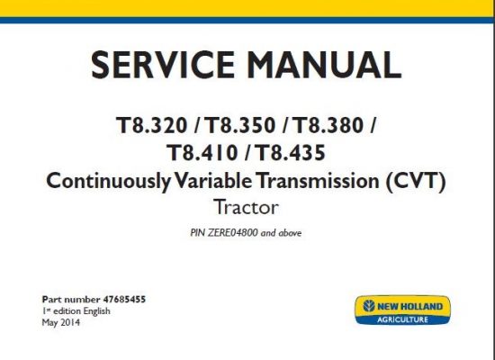 New Holland T8.320 , T8.350 , T8.380 , T8.410 , T8.435 Continuously Variable Transmission (CVT) Tractor Service Repair Manual (PIN ZERE04800 and above) NA