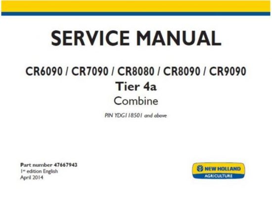 New Holland CR6090 , CR7090 , CR8080 , CR8090 , CR9090 Tier 4a Combine Service Repair Manual (PIN YDG118501 and above)