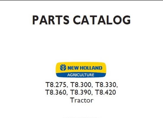 New Holland T8.275, T8.300, T8.330, T8.360, T8.390, T8.420 Tractors Parts Catalog Manual
