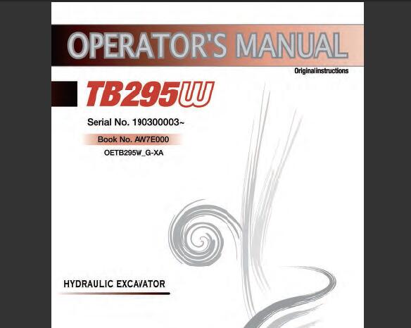 Read This Takeuchi TB295W Hydraulic Excavator Operator’s Manual carefully to learn how to operate and service your machine correctly. Failure to do so could result in personal injury or equipment damage.