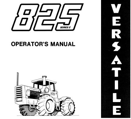 Read This Versatile 825 Tractor Operator’s Manual carefully to learn how to operate and service your machine correctly. Failure to do so could result in personal injury or equipment damage.