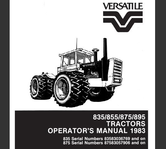 Read This Versatile 835, 855 , 875 ,895 Tractor Operator’s Manual carefully to learn how to operate and service your machine correctly. Failure to do so could result in personal injury or equipment damage.