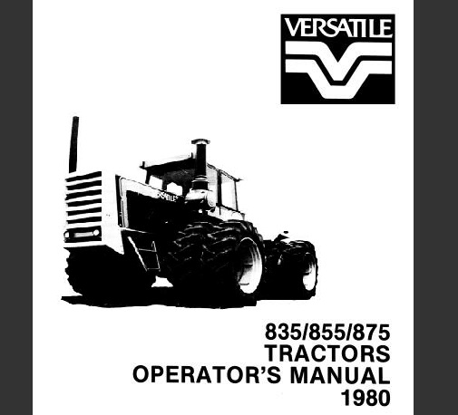 Read This Versatile 835, 855 and 875 Tractor Operator’s Manual carefully to learn how to operate and service your machine correctly. Failure to do so could result in personal injury or equipment damage.
