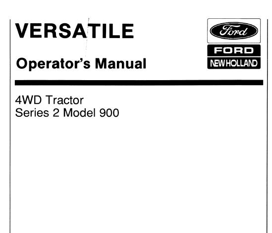 Read This Versatile 900 Series 2 4WD Tractor Operator’s Manual carefully to learn how to operate and service your machine correctly. Failure to do so could result in personal injury or equipment damage.