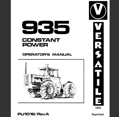 Read This Versatile 935 Constant Power Tractor Operator’s Manual carefully to learn how to operate and service your machine correctly. Failure to do so could result in personal injury or equipment damage.