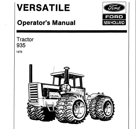 Read This Versatile 935 Tractor Operator’s Manual carefully to learn how to operate and service your machine correctly. Failure to do so could result in personal injury or equipment damage.