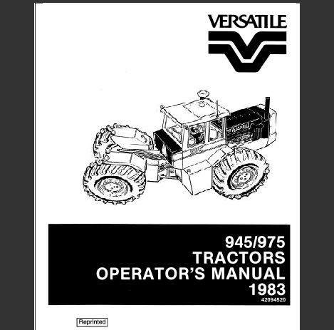 Read This Versatile 945, 975 Tractor Operator’s Manual carefully to learn how to operate and service your machine correctly. Failure to do so could result in personal injury or equipment damage.