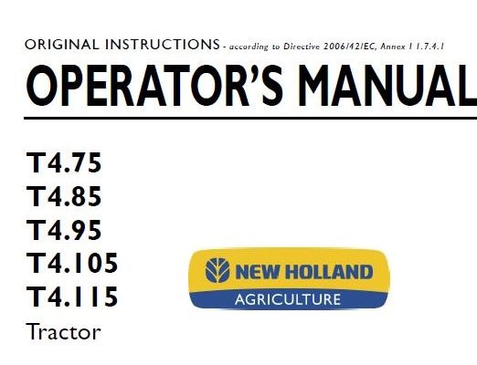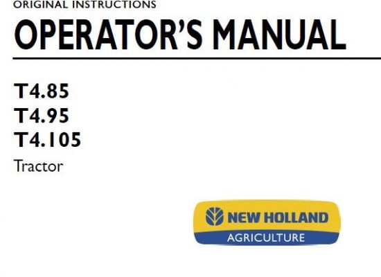 New Holland T4.75, T4.85, T4.95, T4.105, T4.115 Tractor Operator’s Manual