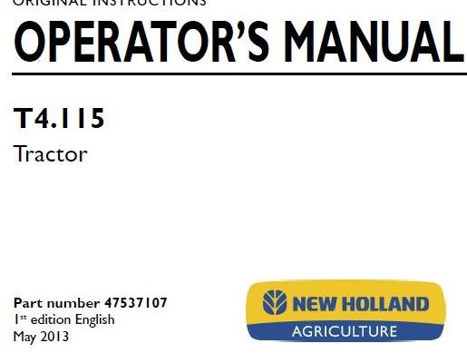 New Holland T4.115 Tractor Operator’s Manual