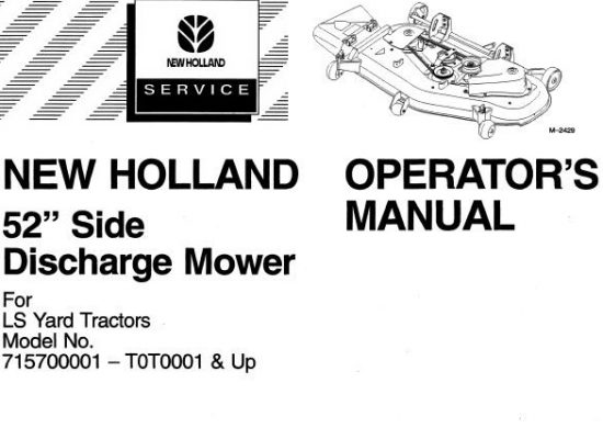 New Holland 52 Side Discharge Mower Operator’s Manual