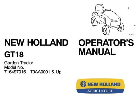 New Holland GT18 Garden Tractor Operator’s Manual ( Model No.716497016-TOAA0001 & Up )