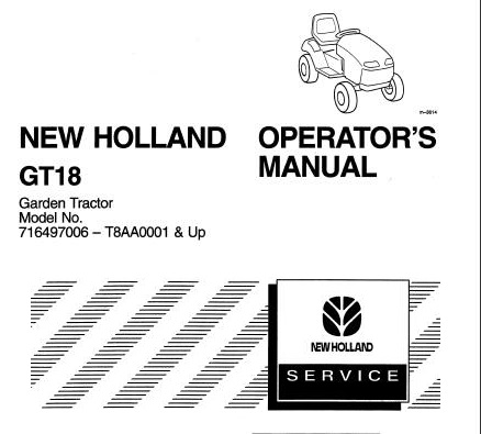 Read This New Holland GT18 Garden Tractor Operator's Manual carefully to learn how to operate and service your machine correctly. Failure to do so could result in personal injury…