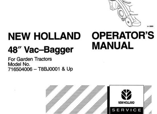 Read This New Holland 48" Vac-Bagger For Garden Tractors Operator's Manual carefully to learn how to operate and service your machine correctly. Failure to do so could result in…