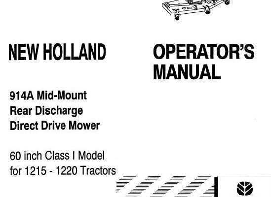 New Holland 914A Mid-Mount Rear Discharge Direct Drive Mower 60 inch Class I Model for 1215 – 1220 Tractors Operator’s Manual