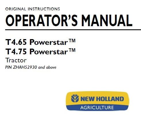 New Holland T4.65 Powerstar, T4.75 Powerstar Tractor Operator’s Manual ( PIN ZHAH52930 and above )