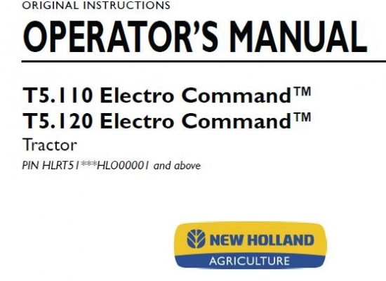 New Holland T5.110, T5.120 Electro Command Tractor Operator’s Manual ( PIN HLRT51***HLO00001 and above )