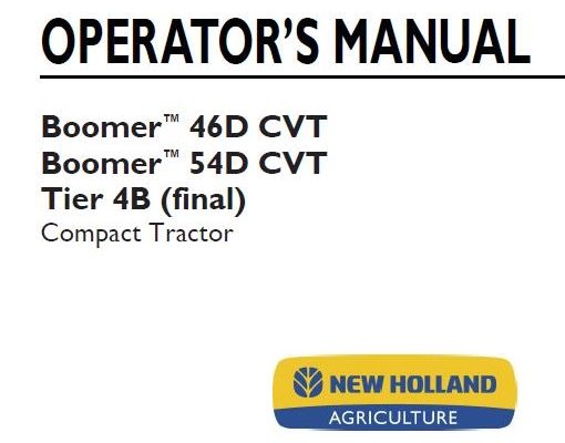 New Holland Boomer 46D CVT, Boomer 54D CVT Tier 4B (final) Compact Tractor Operator’s Manual