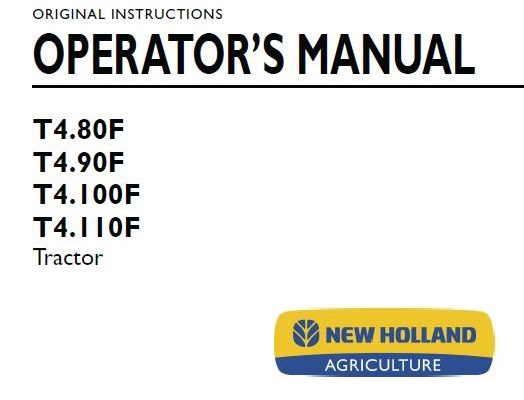 New Holland T4.80F, T4.90F, T4.100F, T4.110F Tractor Operator’s Manual
