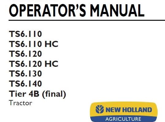 New Holland TS6.110, TS6.110 HC, TS6.120, TS6.120 HC, TS6.130, TS6.140 Tier 4B (final) Tractor Operator’s Manual