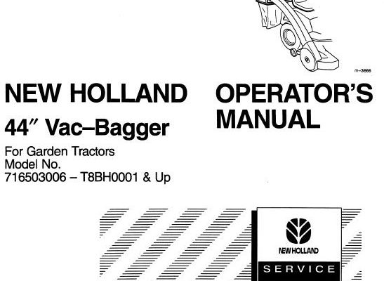Read This New Holland 44" Vac-Bagger For Garden Tractors Operator's Manual carefully to learn how to operate and service your machine correctly. Failure to do so could result in…