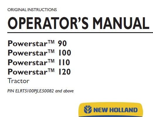 New Holland Powerstar 90, Powerstar 100, Powerstar 110, Powerstar 120 Tractor Operator’s Manual ( PIN ELRT5100PJLE50082 and above)