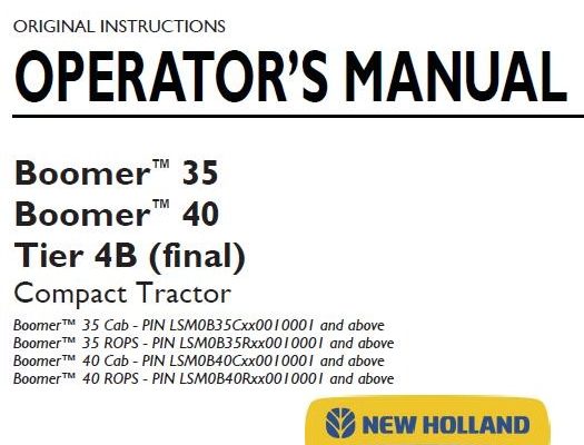 Read This New Holland Boomer 35, Boomer 40 Tier 4B (final) Compact Tractor Operator's Manual carefully to learn how to operate and service your machine correctly. Failure to do…