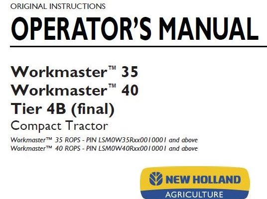 New Holland Workmaster 35,Workmaster 45 Tier 4B (final) Compact Tractor Operator’s Manual