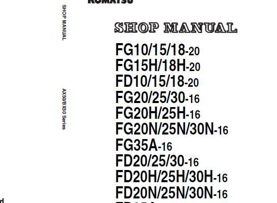 Komatsu FG10-20/FG15-20/FG18-20, FG15H-20/FG18H-20, FD10-20/FD15-20/FD18-20, FG20-16/FG25-16/FG30-16, FG20H-16/FG25H-16, FG20N-16/FG25N-16/FG30N-16, FG35A-16, FD20-16/FD25-16/FD30-16, FD20H-16/FD25H-16/FD30H-16, FD20N-16/FD25N-16/FD30N-16, FD35A-16 Forklift Truck Service Repair Manual