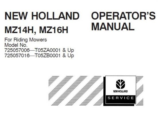 Read This New Holland MZ14H, MZ16H For Riding Mowers Operator's Manual carefully to learn how to operate and service your machine correctly. Failure to do so could result in…