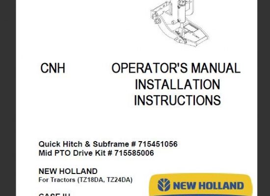 Read This New Holland Quick Hitch & Subframe Mid PTO Drive Kit Operator's Manual carefully to learn how to operate and service your machine correctly. Failure to do so…